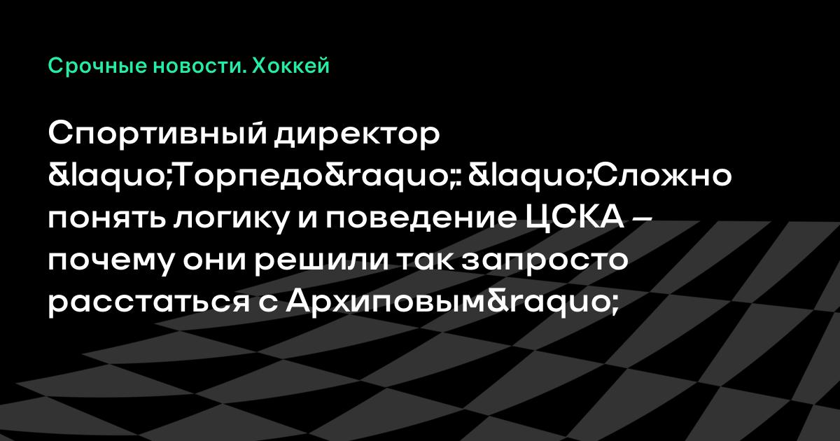 Спортивный директор «Торпедо»: «Сложно понять логику и поведение ЦСКА – почему они решили так запросто расстаться с Архиповым»