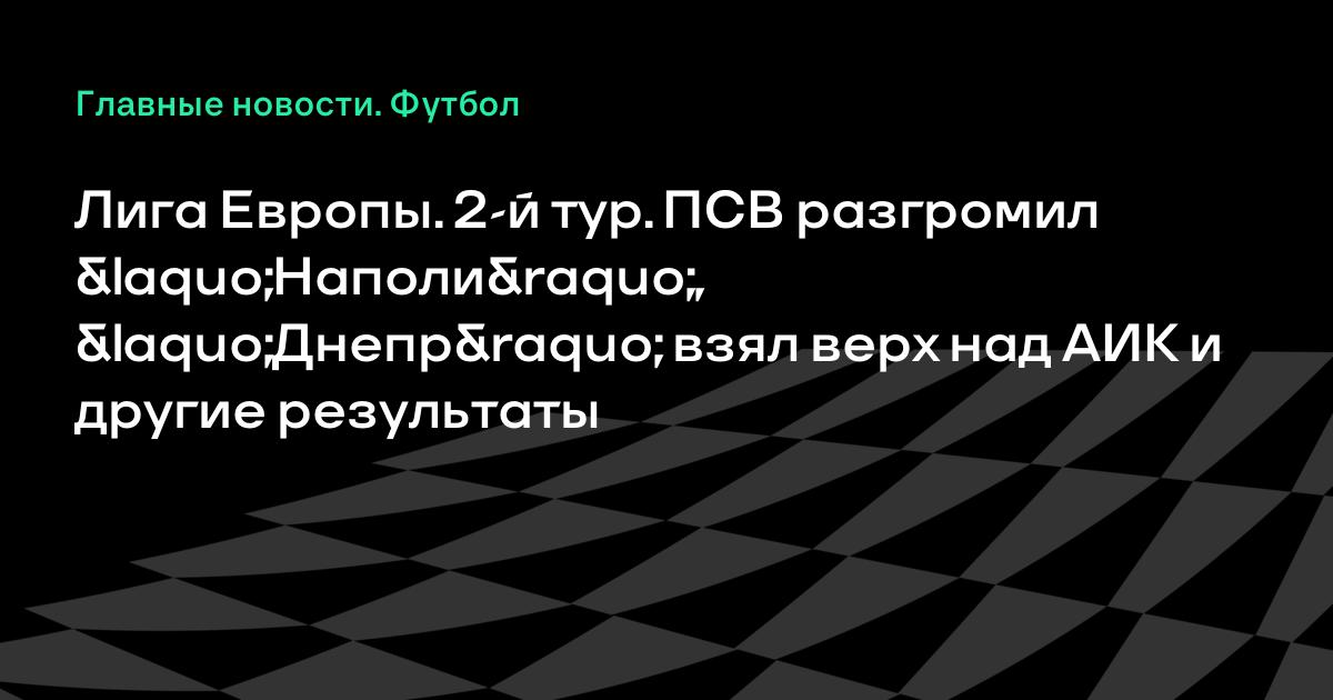 Лига Европы. 2-й тур. ПСВ разгромил «Наполи», «Днепр» взял верх над АИК и другие результаты