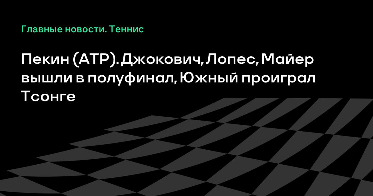 Пекин (АТР). Джокович, Лопес, Майер вышли в полуфинал, Южный проиграл Тсонге