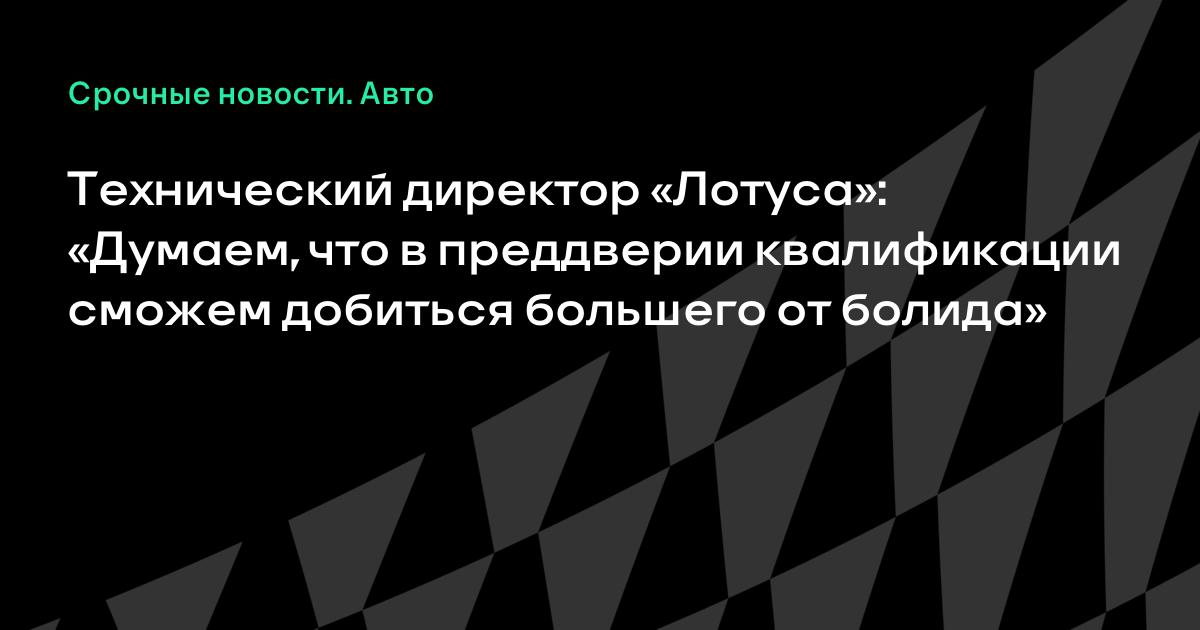 Технический директор «Лотуса»: «Думаем, что в преддверии квалификации сможем добиться большего от болида»