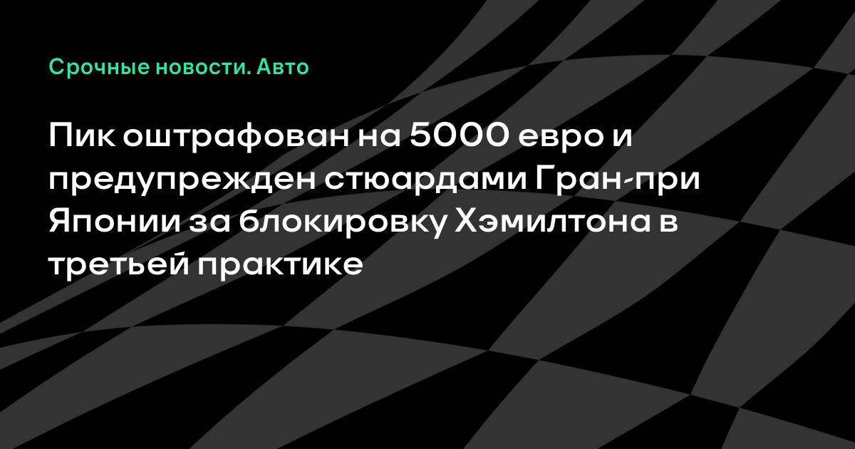 Пик оштрафован на 5000 евро и предупрежден стюардами Гран-при Японии за блокировку Хэмилтона в третьей практике