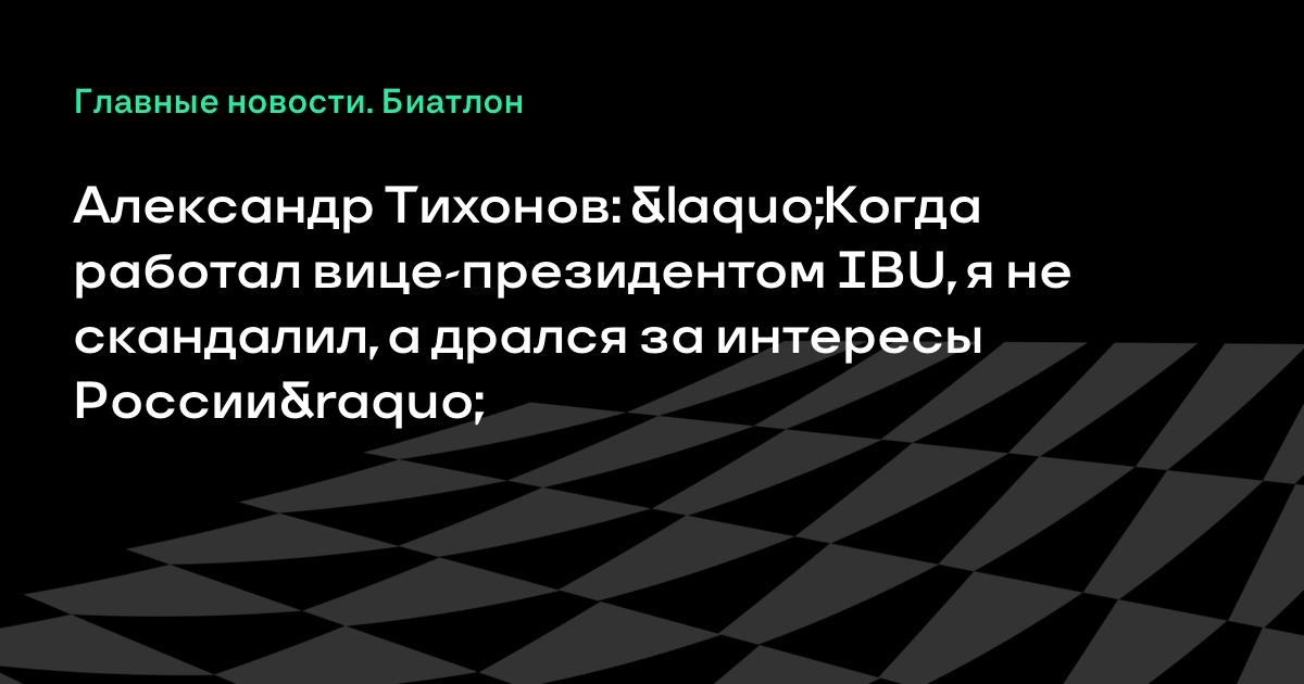 Все страны, приехавшие на летний чемпионат мира, сказали: больше мы в Россию ни ногой. Когда я работал вице-президентом IBU, я не скандалил, а дрался за интересы России, интересы российского биатлона», – сказал Тихонов в блоге на своем официальном сайте.