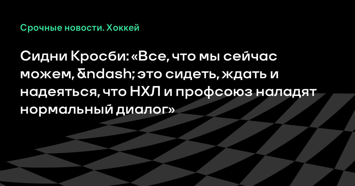 Сидни Кросби: «Все, что мы сейчас можем, – это сидеть, ждать и надеяться, что НХЛ и профсоюз наладят нормальный диалог»