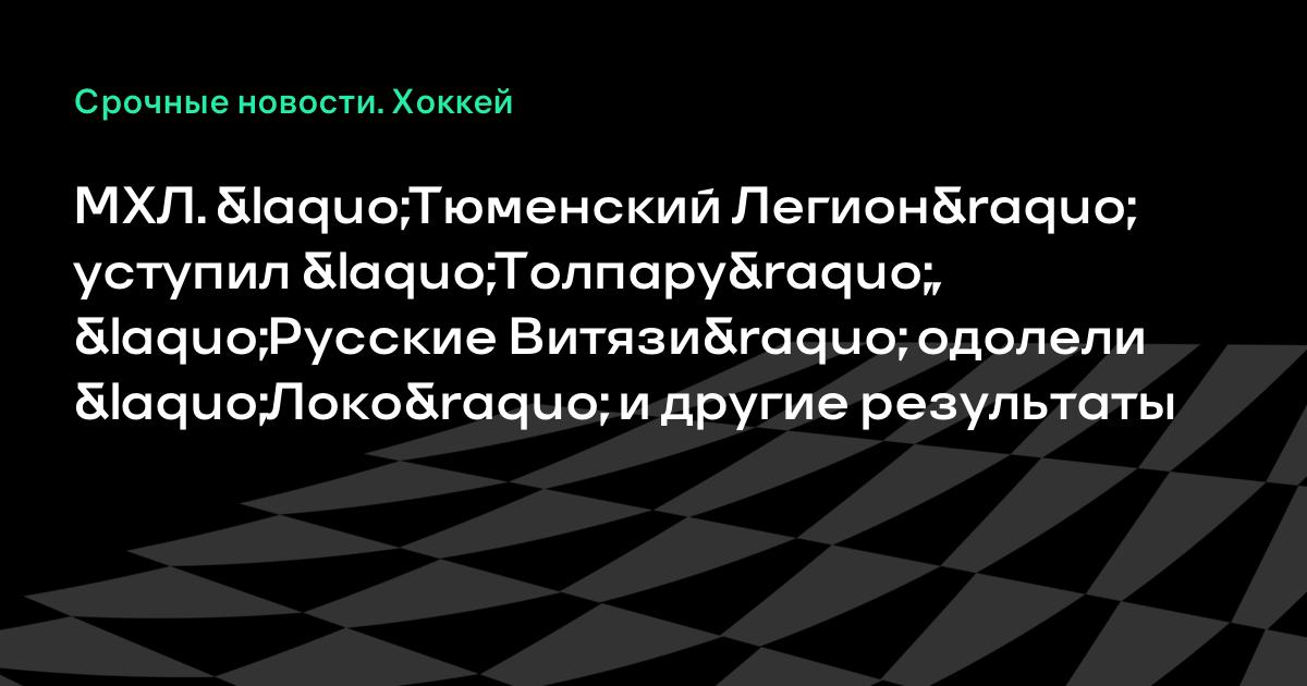 МХЛ. «Тюменский Легион» уступил «Толпару», «Русские Витязи» одолели «Локо» и другие результаты