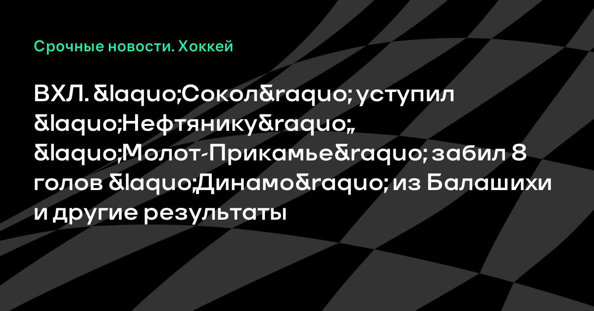 ВХЛ. «Сокол» уступил «Нефтянику», «Молот-Прикамье» забил 8 голов «Динамо» из Балашихи и другие результаты
