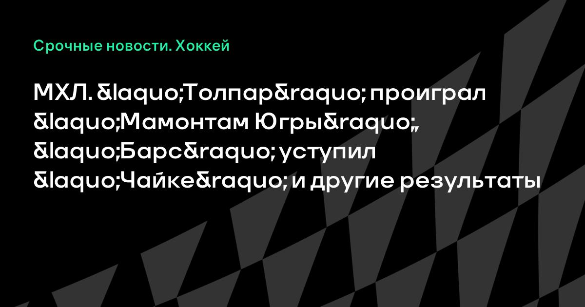 МХЛ. «Толпар» проиграл «Мамонтам Югры», «Барс» уступил «Чайке» и другие результаты