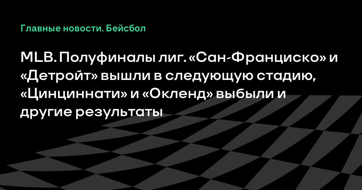 MLB. Полуфиналы лиг. «Сан-Франциско» и «Детройт» вышли в следующую стадию, «Цинциннати» и «Окленд» выбыли и другие результаты