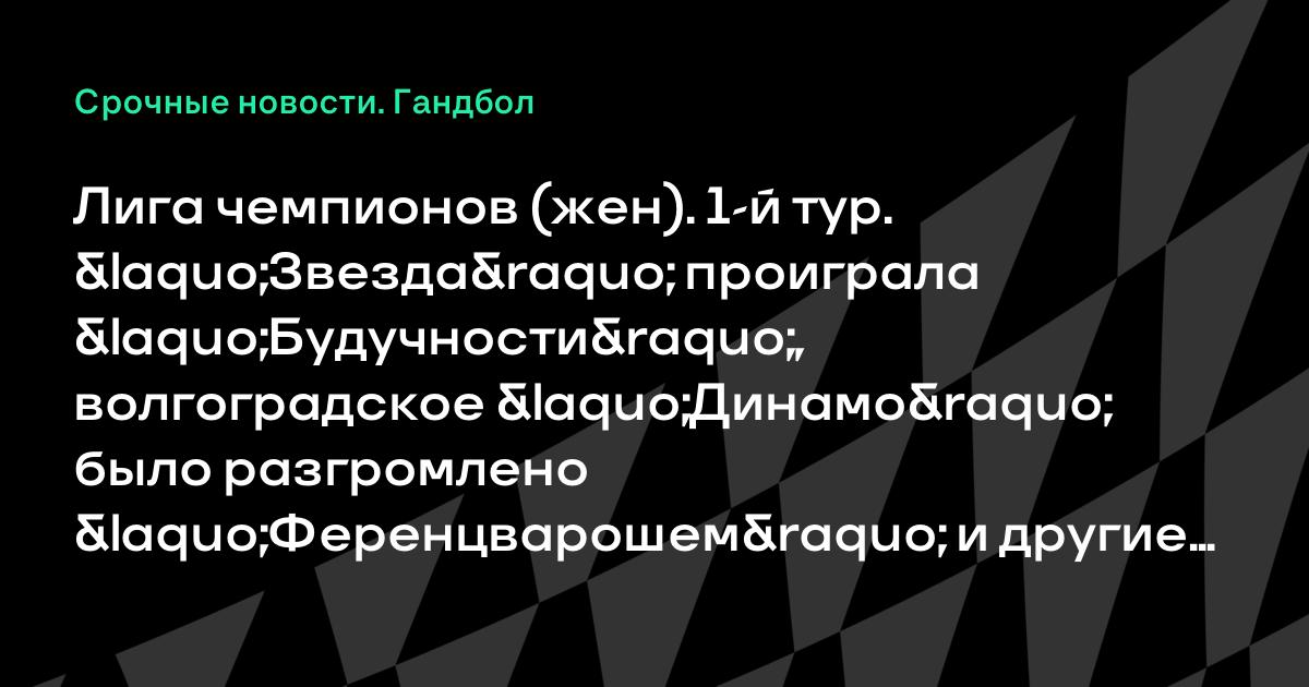 Лига чемпионов (жен). 1-й тур. «Звезда» проиграла «Будучности», волгоградское «Динамо» было разгромлено «Ференцварошем» и другие результаты