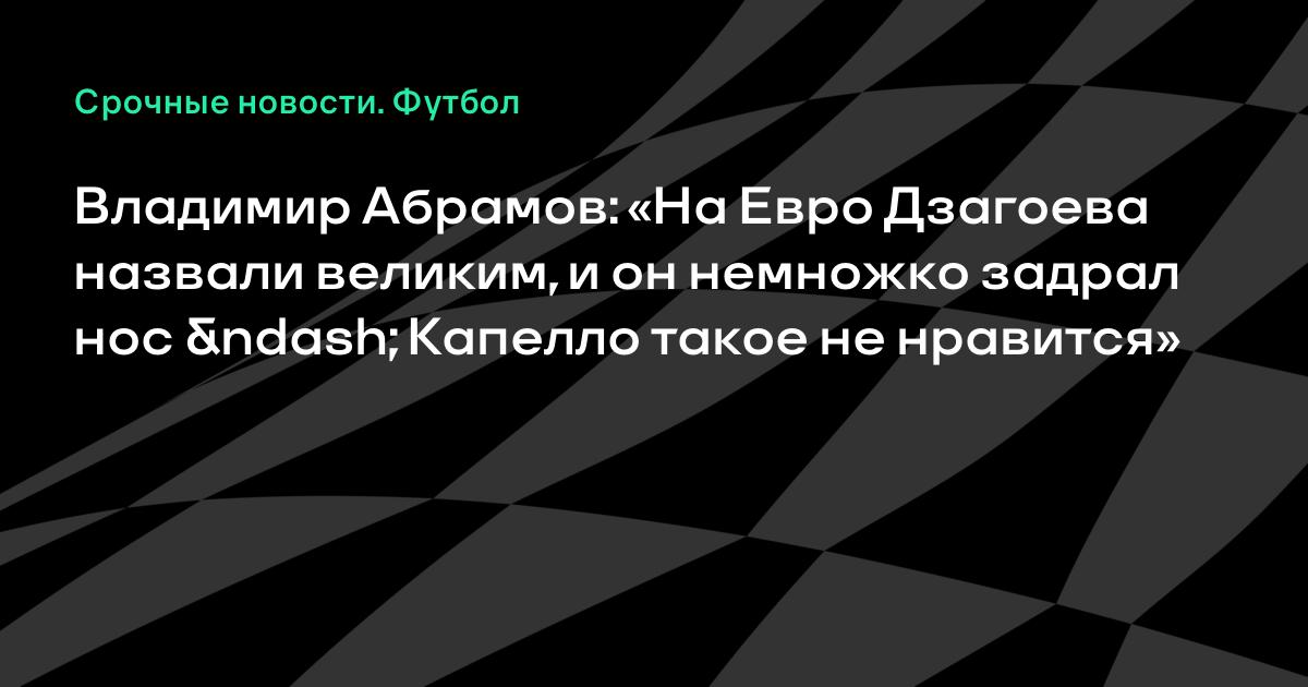 Владимир Абрамов: «На Евро Дзагоева назвали великим, и он немножко задрал нос – Капелло такое не нравится»
