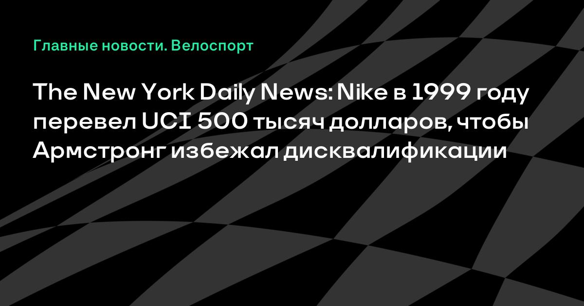 The New York Daily News: Nike в 1999 году перевел UCI 500 тысяч долларов, чтобы Армстронг избежал дисквалификации