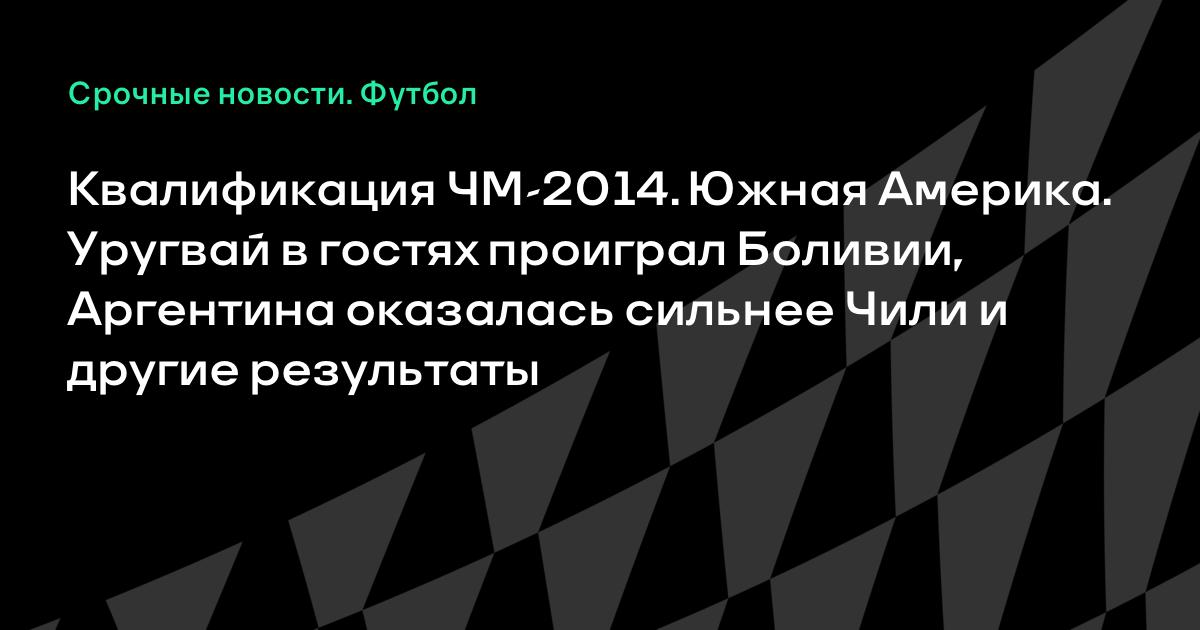 В рамках отборочного цикла ЧМ-2014 в Южной Америке Боливия дома победила Уругвай со счетом 4:1, сборная Чили проиграла Аргентине (1:2), у которой отличились Лионель Месси и Гонсало Игуаин.