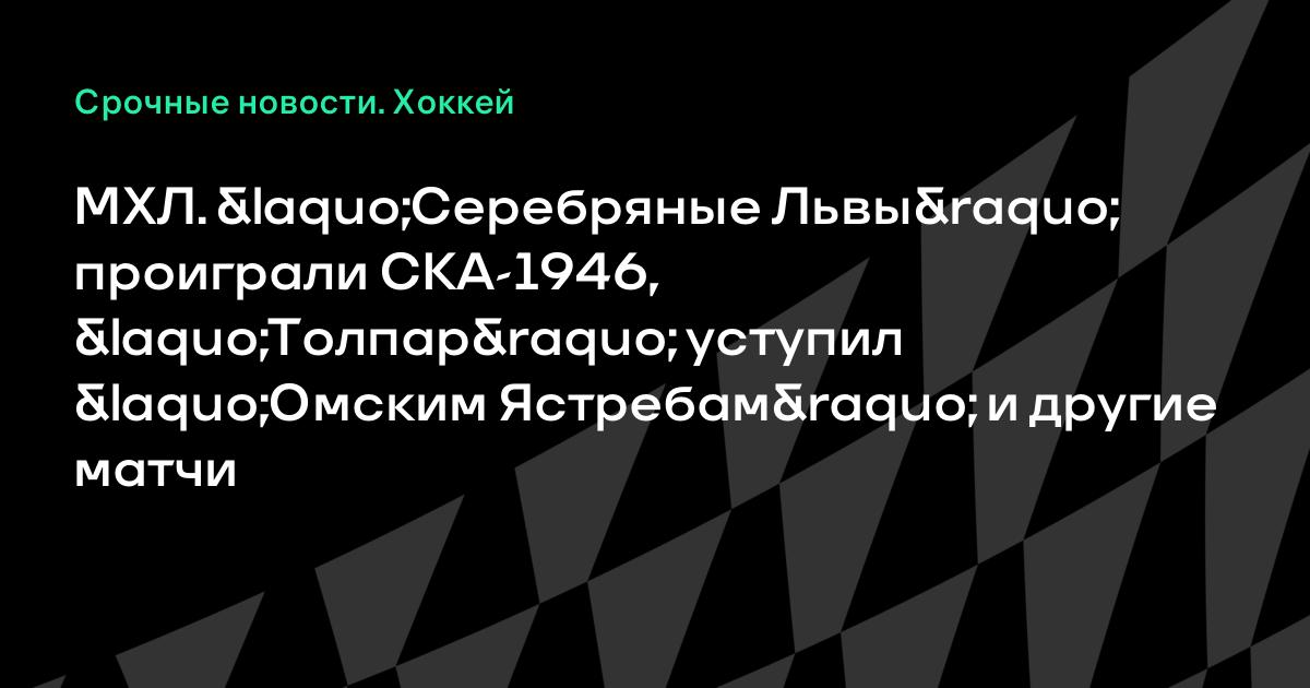 МХЛ. «Серебряные Львы» проиграли СКА-1946, «Толпар» уступил «Омским Ястребам» и другие матчи