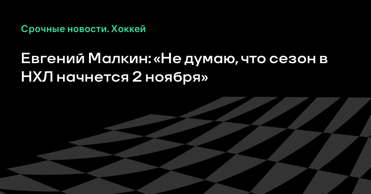 Евгений Малкин: «Не думаю, что сезон в НХЛ начнется 2 ноября»