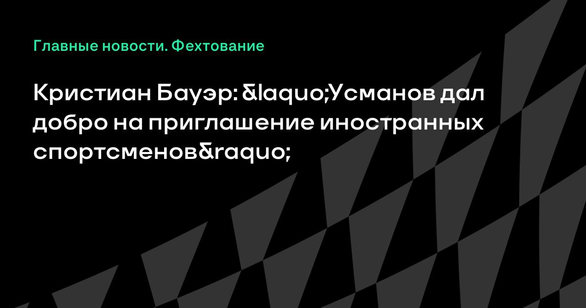 Кристиан Бауэр: «Усманов дал добро на приглашение иностранных спортсменов»