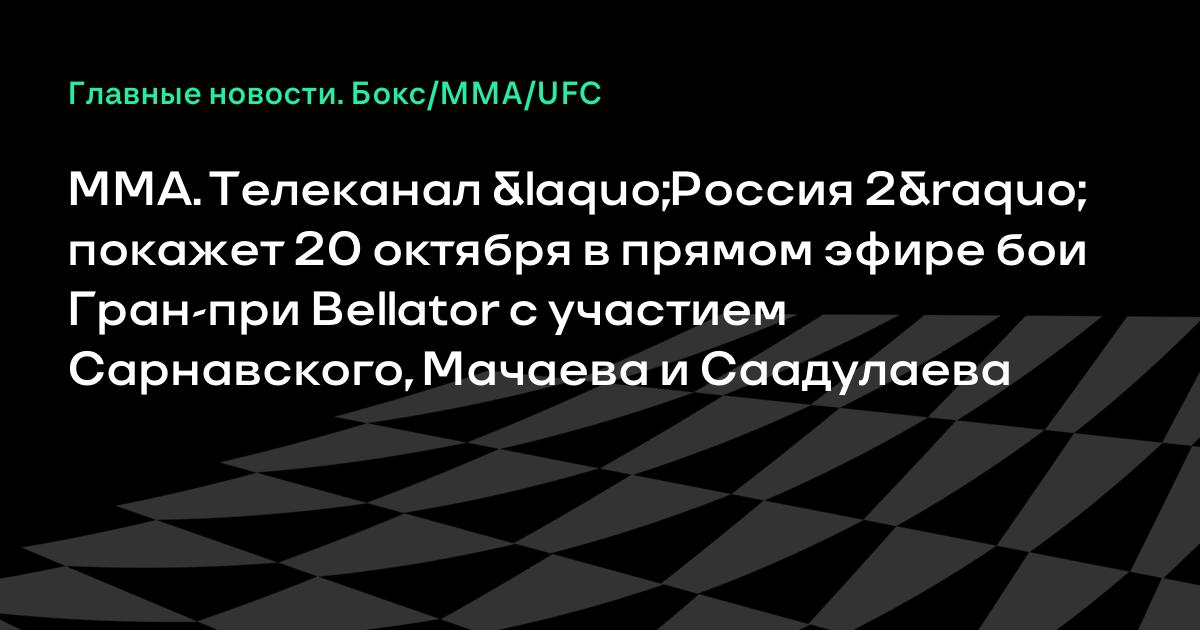 MMA. Телеканал «Россия 2» покажет 20 октября в прямом эфире бои Гран-при Bellator с участием Сарнавского, Мачаева и Саадулаева