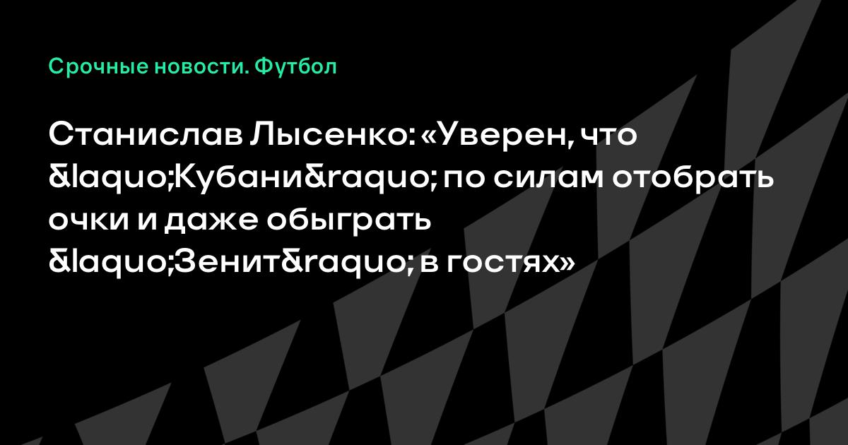 Бывший игрок «Кубани» Станислав Лысенко поделился ожиданиями от матча 12-го тура чемпионата России против «Зенита».