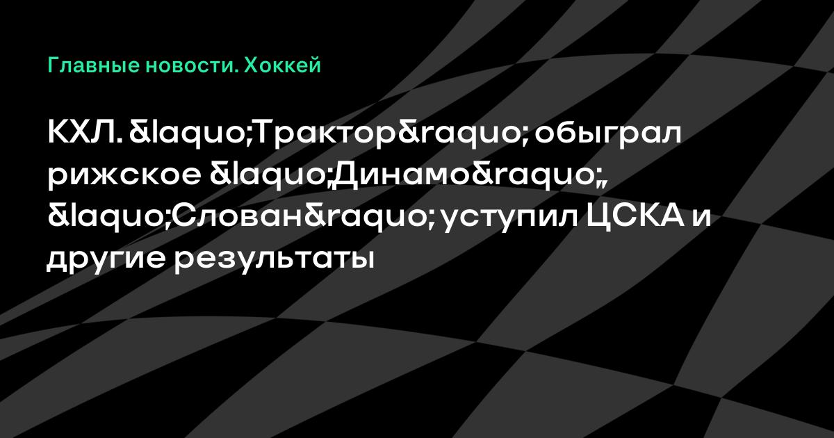 КХЛ. «Трактор» обыграл рижское «Динамо», «Слован» уступил ЦСКА и другие результаты