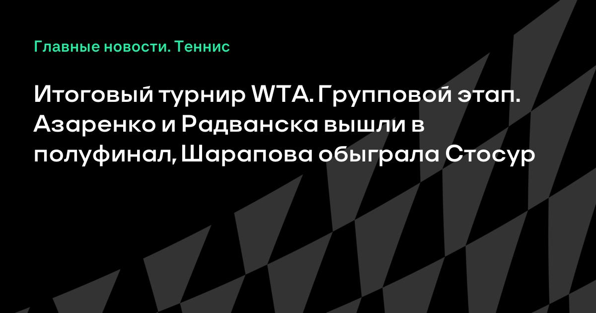 Итоговый турнир WTA. Групповой этап. Азаренко и Радванска вышли в полуфинал, Шарапова обыграла Стосур