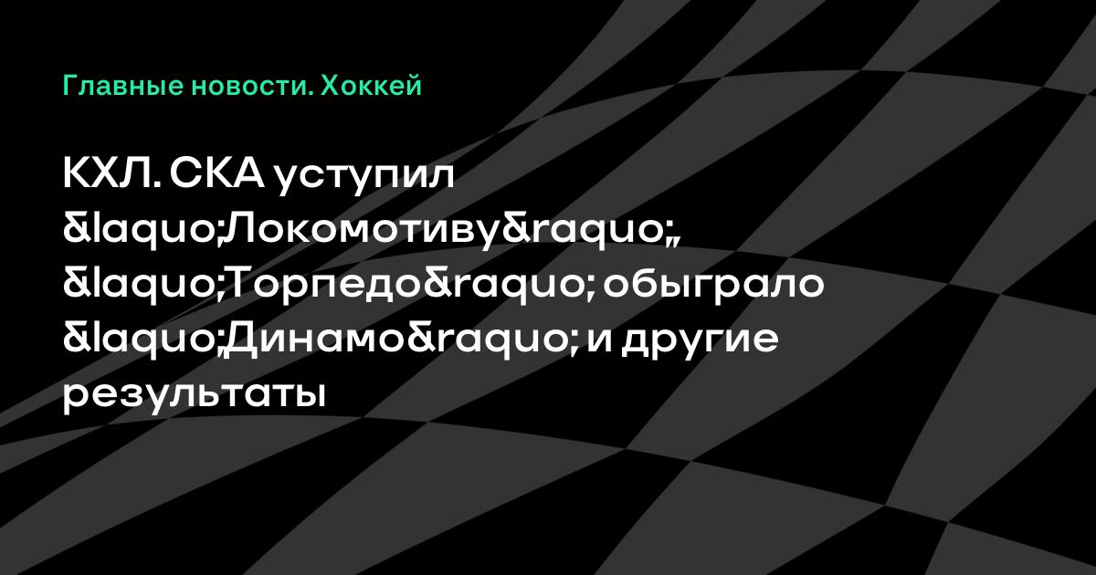 КХЛ. СКА уступил «Локомотиву», «Торпедо» обыграло «Динамо» и другие результаты