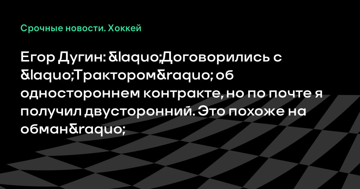 Егор Дугин: «Договорились с «Трактором» об одностороннем контракте, но по почте я получил двусторонний. Это похоже на обман»