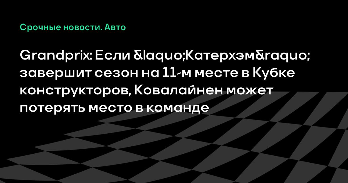 Пилот «Катерхэма» Хейкки Ковалайнен может потерять место в команде, если она завершит нынешний сезон на 11-м месте в Кубке конструкторов, так как в таком случае малазийская конюшня недополучит 10 млн долларов призовых, так как все предыдущие годы заканчивала чемпионат на 10-х местах. В связи с этим команда может предпочесть пилота, который бы смог привести с собой спонсоров, сообщает Grandprix.