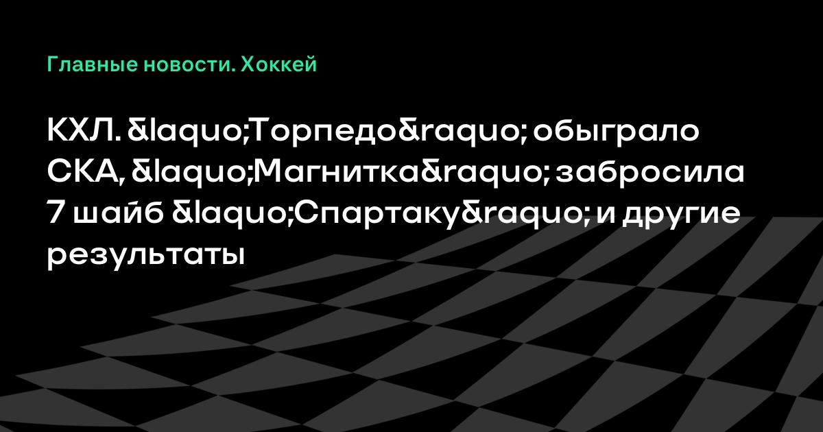 КХЛ. «Торпедо» обыграло СКА, «Магнитка» забросила 7 шайб «Спартаку» и другие результаты
