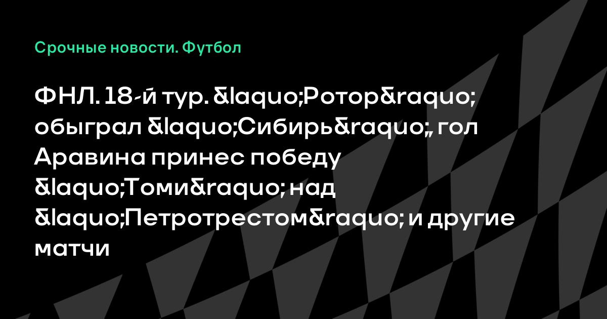 ФНЛ. 18-й тур. «Ротор» обыграл «Сибирь», гол Аравина принес победу «Томи» над «Петротрестом» и другие матчи