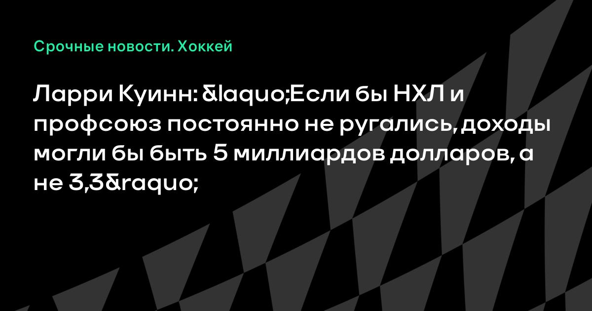 «Учитывая, что в прошлом сезоне лига заработала 3,3 миллиарда долларов, если бы НХЛ и профсоюз постоянно не ругались, а договорились бы раз и навсегда, доходы могли бы составить 5 миллиардов. НХЛ нужна культура, близкая к той, что в НФЛ, а не в МЛБ», – цитирует Куинна EPSN.