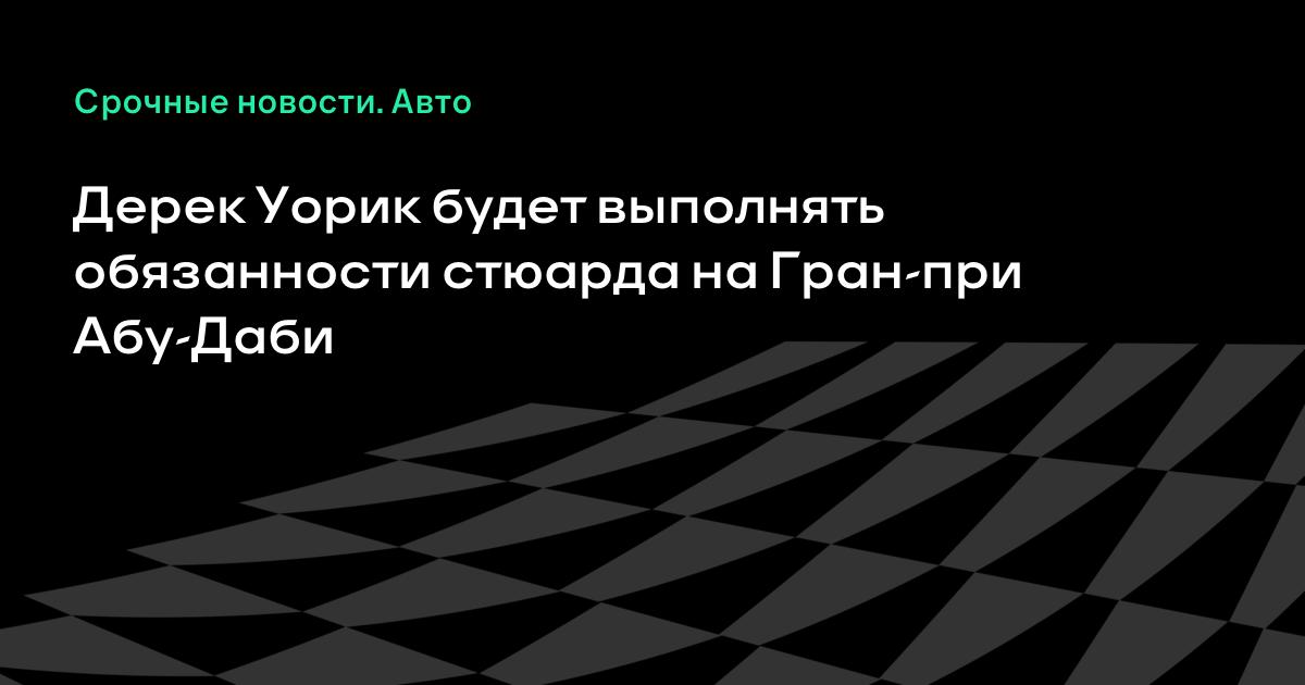 ФИА объявила о том, что бывший гонщик «Формулы-1» и победитель гонки «24 часа Ле-Мана» Дерек Уорик будет выполнять обязанности стюарда на предстоящем Гран-при Абу-Даби, сообщает GP Update. Напомним, что в этом году Уорик уже принимал участие в судействе на этапах в Германии и Японии.