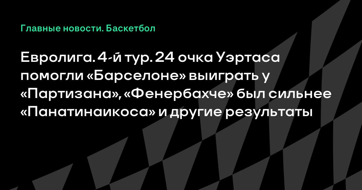 Евролига. 4-й тур. 24 очка Уэртаса помогли «Барселоне» выиграть у «Партизана», «Фенербахче» был сильнее «Панатинаикоса» и другие результаты