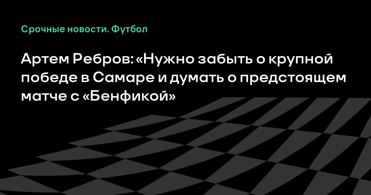 — Да. Нам предстоит важнейший матч на выезде. Готовиться к нему надо уже сейчас: забыть о крупной победе в Самаре и думать о предстоящем матче с «Бенфикой». И как следует восстановиться: времени до визита в Лиссабон на самом деле осталось не много, – приводит слова Реброва официальный сайт клуба.