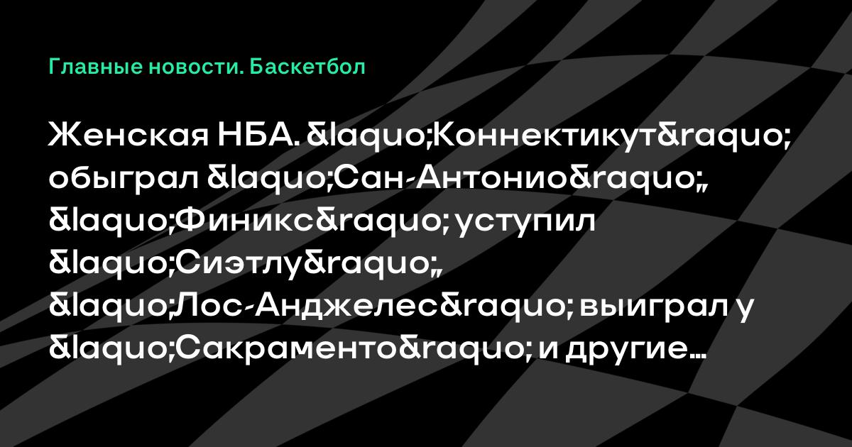 Женская НБА. «Коннектикут» обыграл «Сан-Антонио», «Финикс» уступил «Сиэтлу», «Лос-Анджелес» выиграл у «Сакраменто» и другие результаты