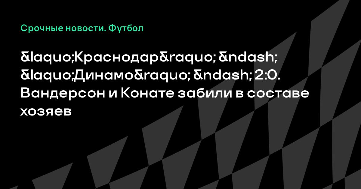 «Краснодар» – «Динамо» – 2:0. Вандерсон и Конате забили в составе хозяев