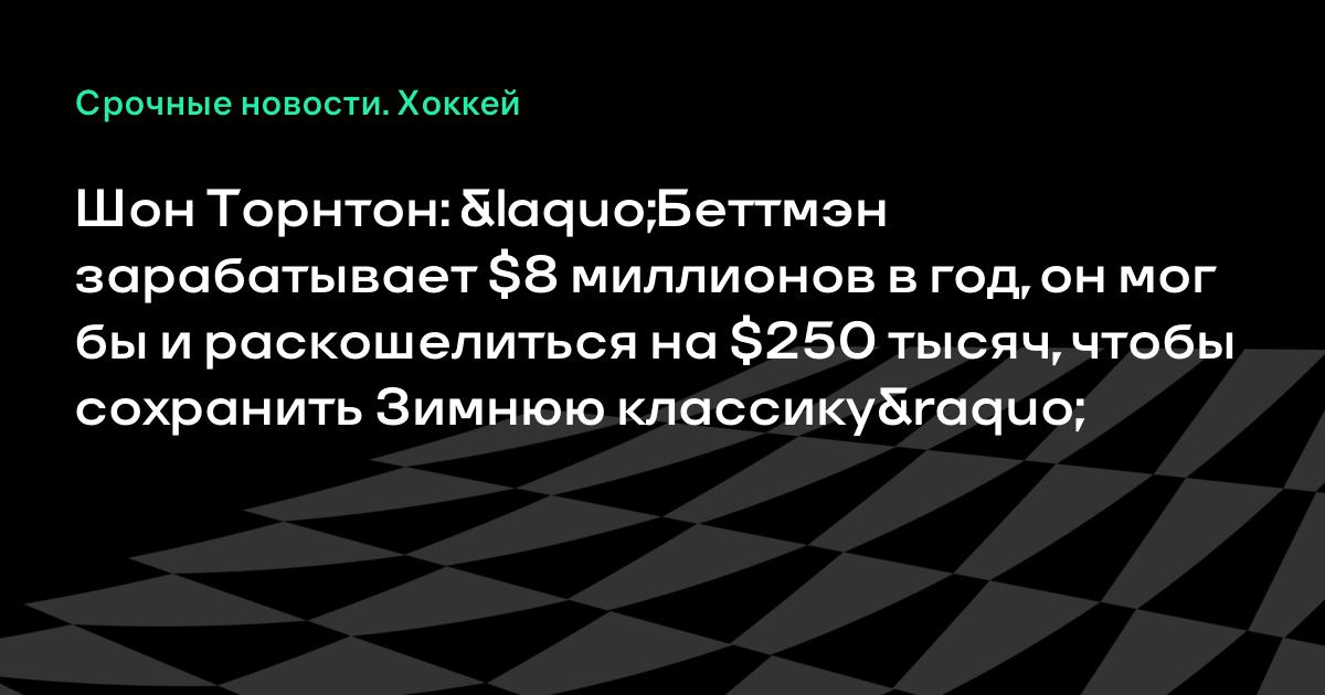 Шон Торнтон: «Беттмэн зарабатывает $8 миллионов в год, он мог бы и раскошелиться на $250 тысяч, чтобы сохранить Зимнюю классику»