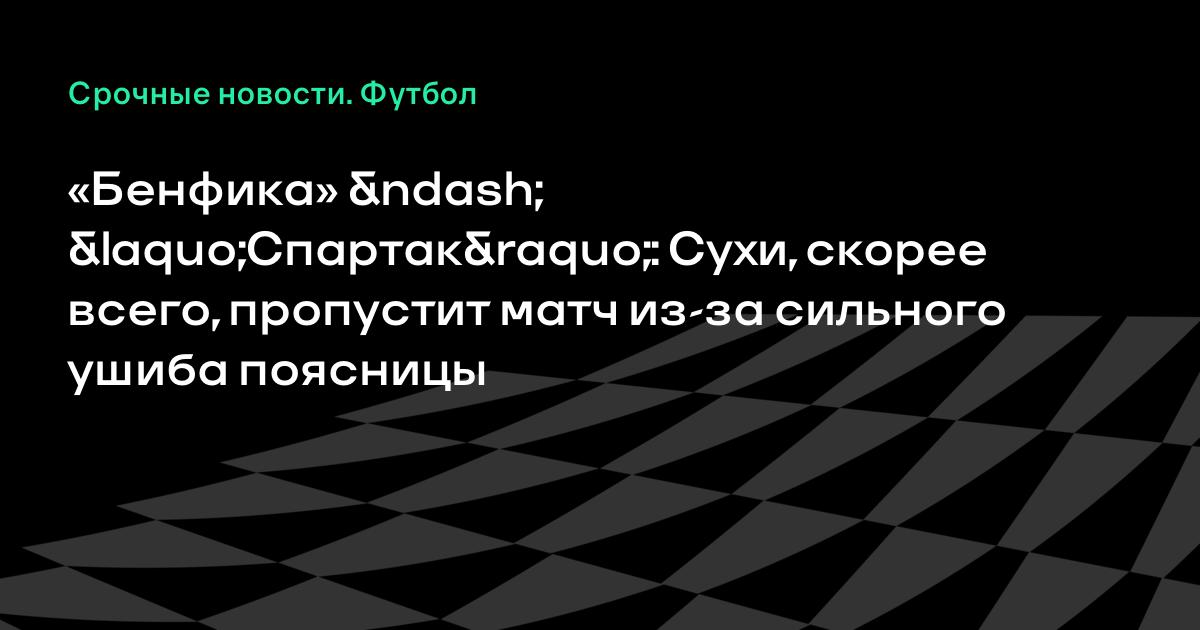 «Бенфика» – «Спартак»: Сухи, скорее всего, пропустит матч из-за сильного ушиба поясницы