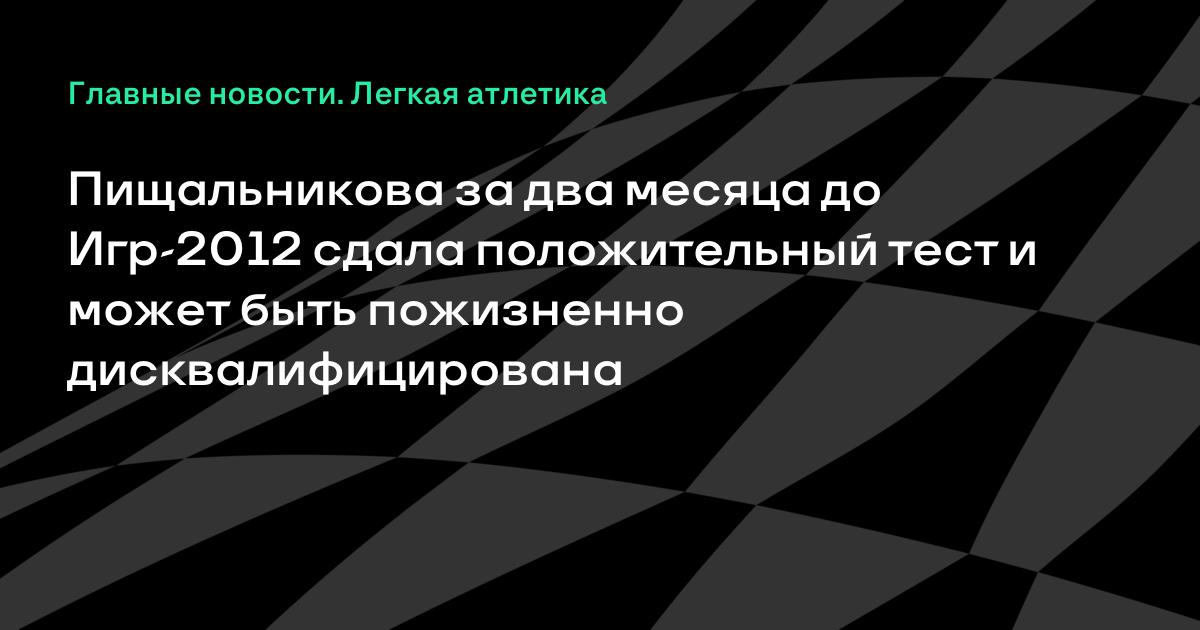 Пищальникова за два месяца до Игр-2012 сдала положительный тест и может быть пожизненно дисквалифицирована
