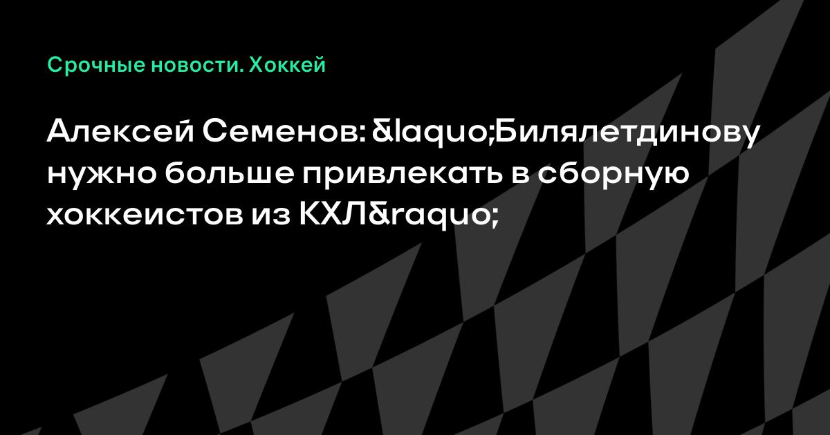 Алексей Семенов: «Билялетдинову нужно больше привлекать в сборную хоккеистов из КХЛ»