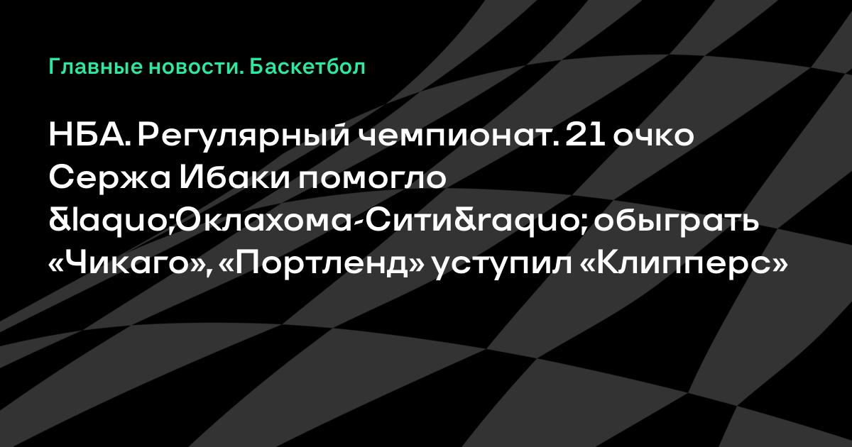Сегодня в рамках регулярного чемпионата НБА состоялись два матча. 21 очко Сержа Ибаки и 24 – Кевина Дюрэнта помогли «Оклахома-Сити» обыграть в гостях «Чикаго». «Клипперс» одержали победу в выездном матче с «Портлендом».