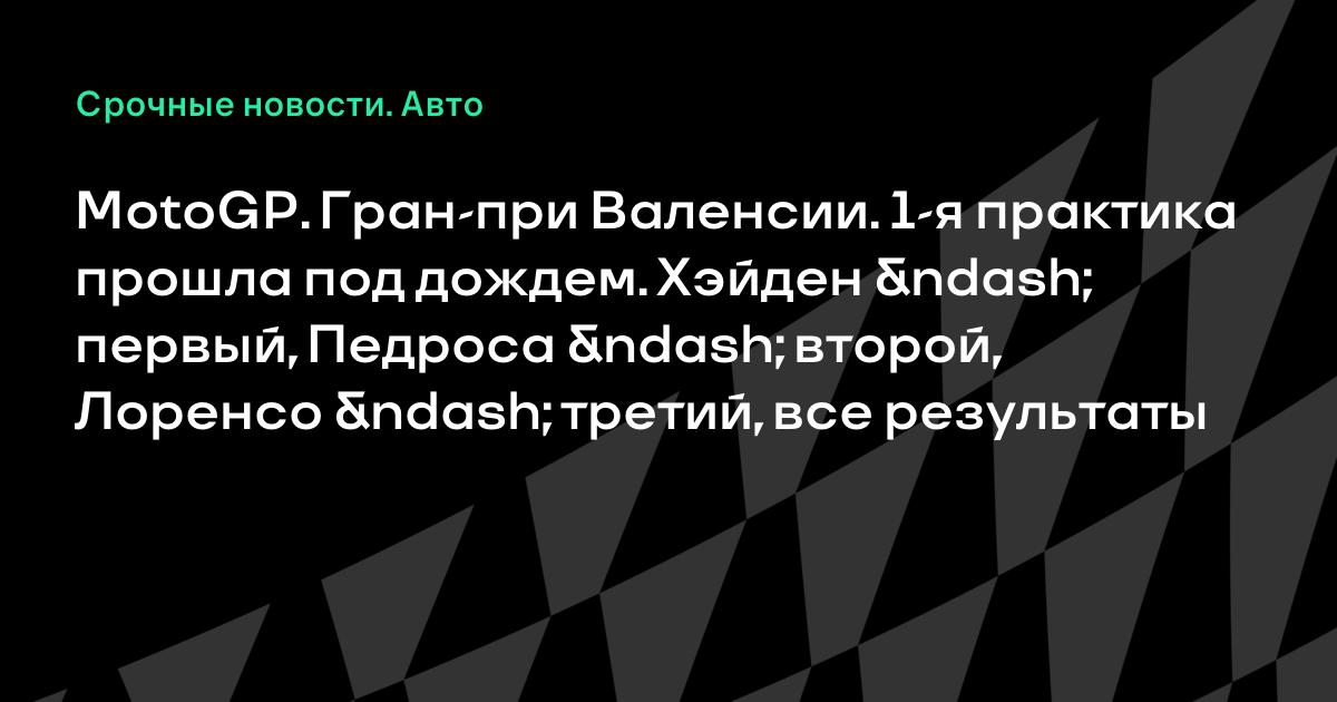 MotoGP. Гран-при Валенсии. 1-я практика прошла под дождем. Хэйден – первый, Педроса – второй, Лоренсо – третий, все результаты