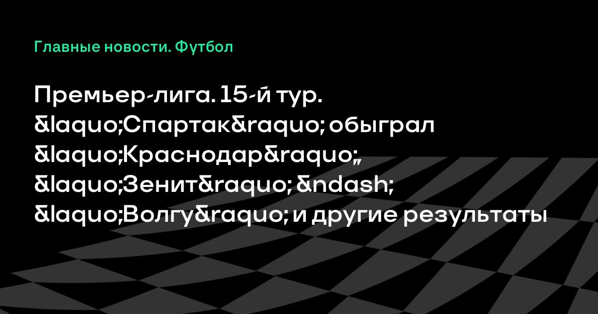 Премьер-лига. 15-й тур. «Спартак» обыграл «Краснодар», «Зенит» – «Волгу» и другие результаты