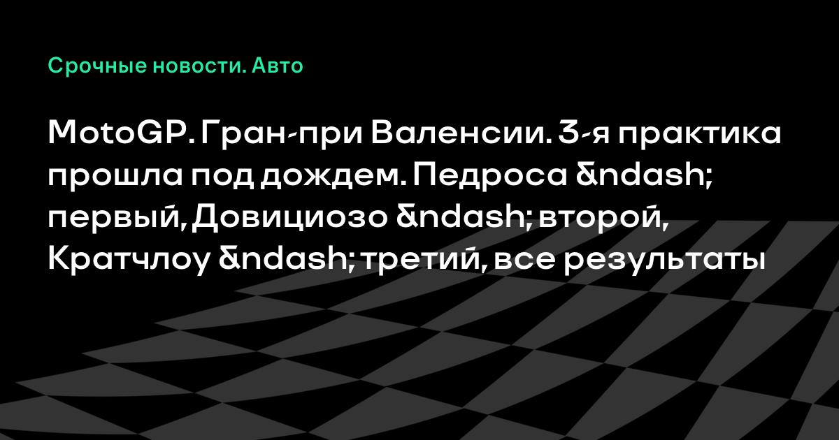 MotoGP. Гран-при Валенсии. 3-я практика прошла под дождем. Педроса – первый, Довициозо – второй, Кратчлоу – третий, все результаты