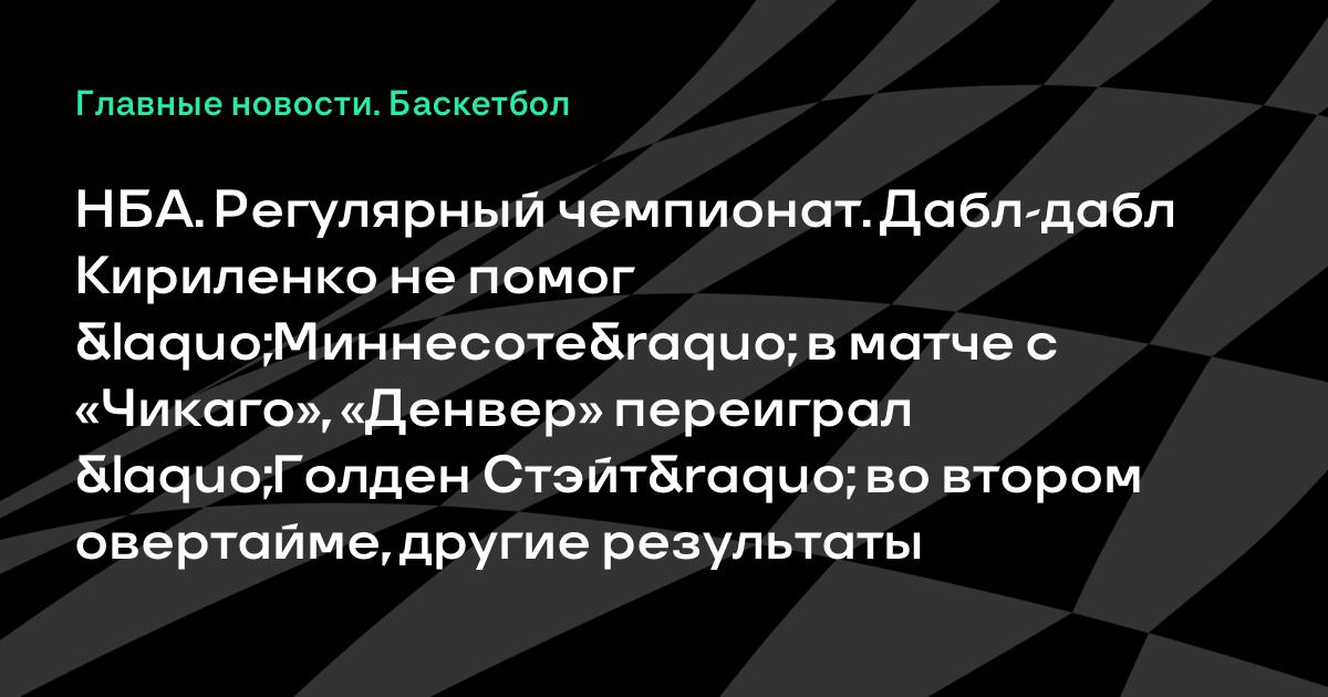 НБА. Регулярный чемпионат. Дабл-дабл Кириленко не помог «Миннесоте» в матче с «Чикаго», «Денвер» переиграл «Голден Стэйт» во втором овертайме, другие результаты