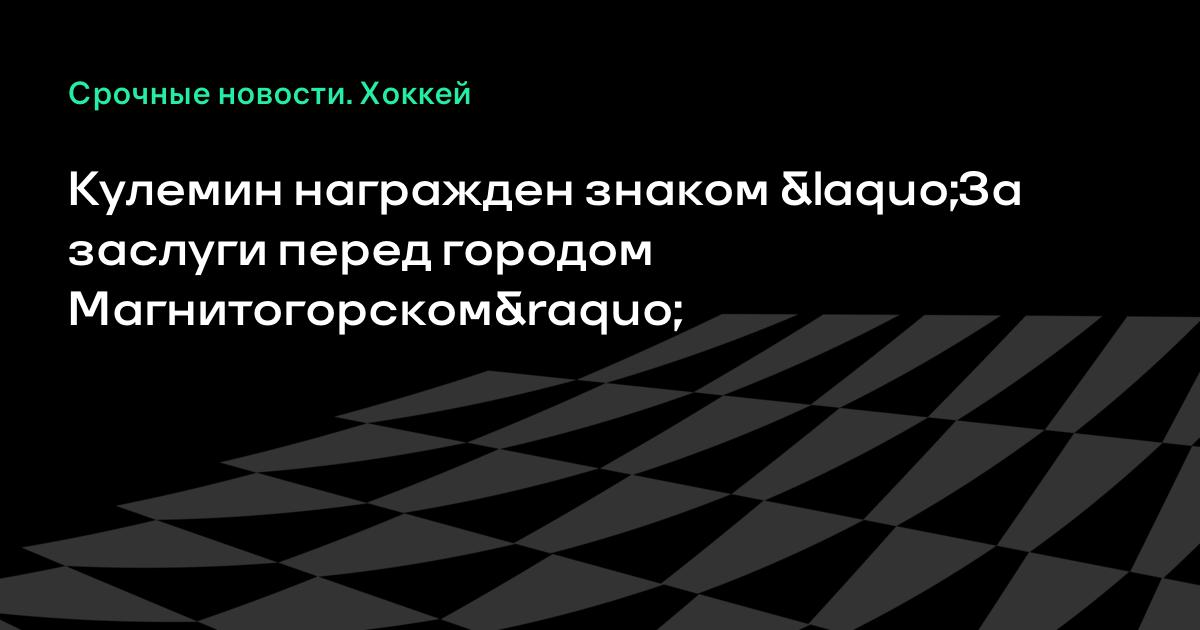 Форвард «Магнитки» Николай Кулемин был награжден почетным знаком «За заслуги перед городом Магнитогорском», сообщает официальный сайт клуба.
