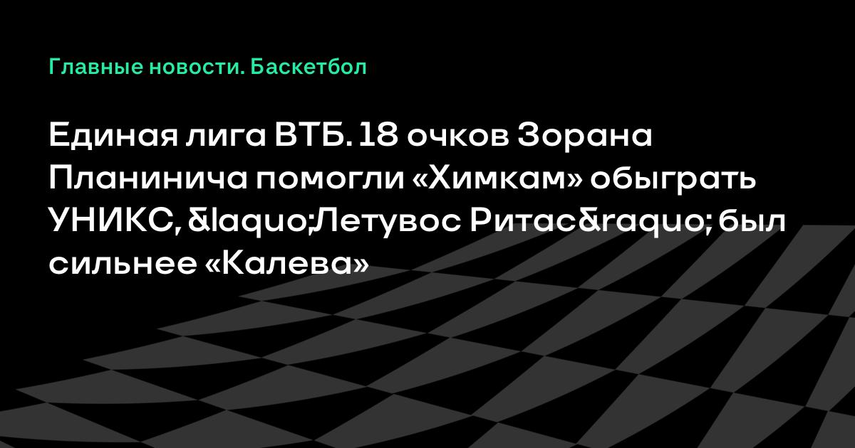 Единая лига ВТБ. 18 очков Зорана Планинича помогли «Химкам» обыграть УНИКС, «Летувос Ритас» был сильнее «Калева»
