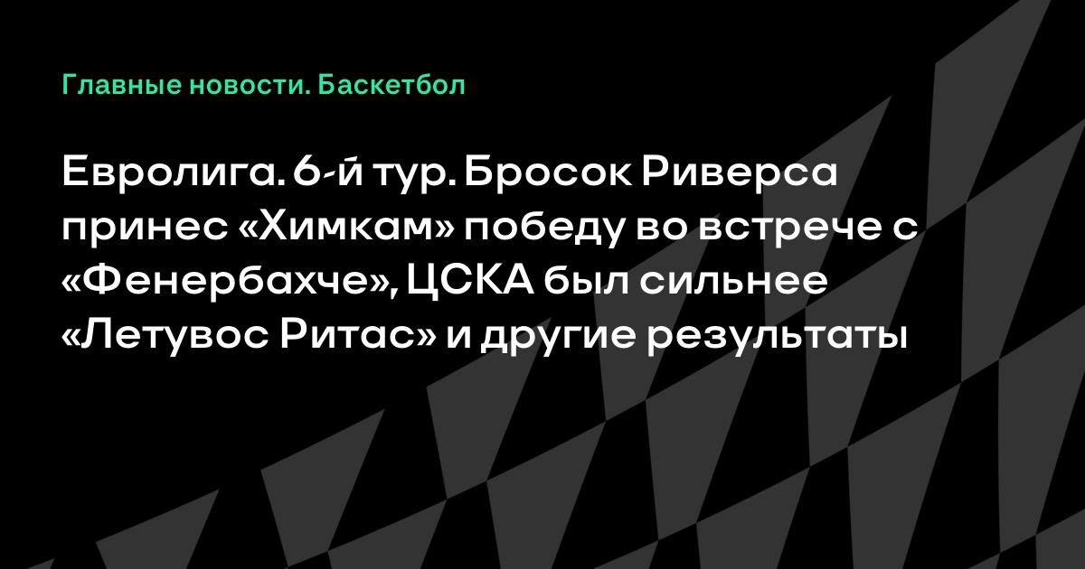 Евролига. 6-й тур. Бросок Риверса принес «Химкам» победу во встрече с «Фенербахче», ЦСКА был сильнее «Летувос Ритас» и другие результаты
