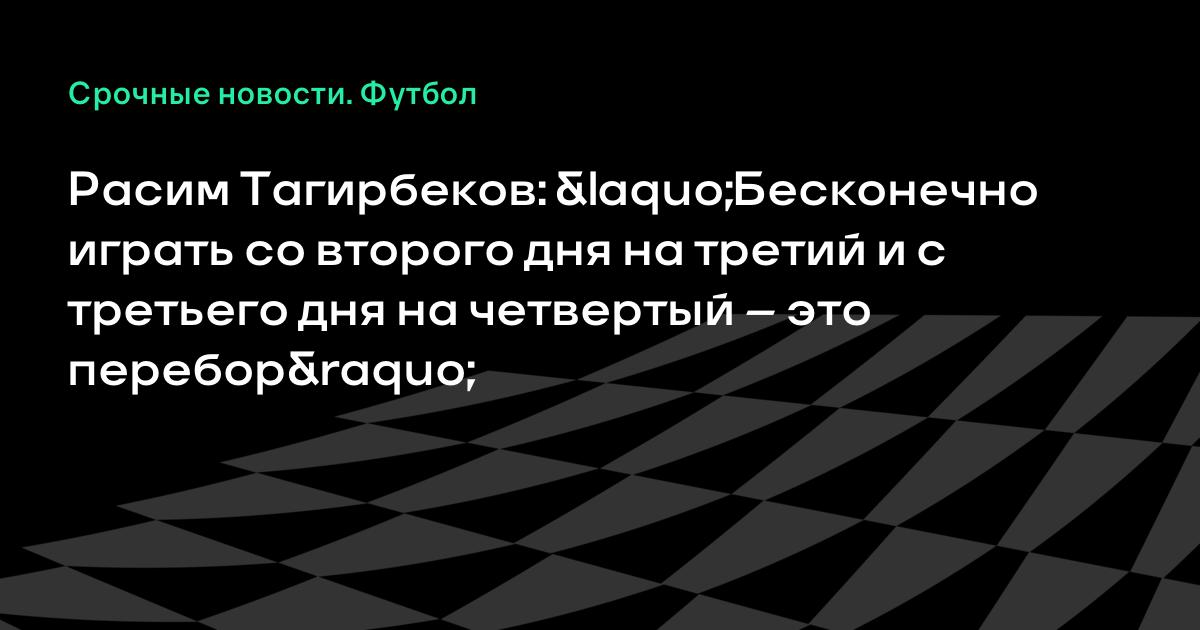 Расим Тагирбеков: «Бесконечно играть со второго дня на третий и с третьего дня на четвертый – это перебор»