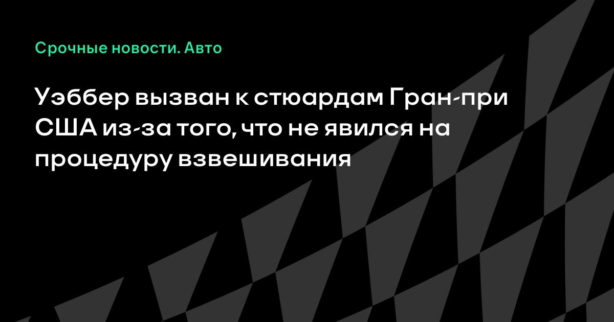 Пилот «Ред Булл» Марк Уэббер был вызван к стюардам Гран-при США для проведения разбирательства в связи с тем, что австралийский гонщик не явился на обязательную процедуру взвешивания, сообщает Autosport.