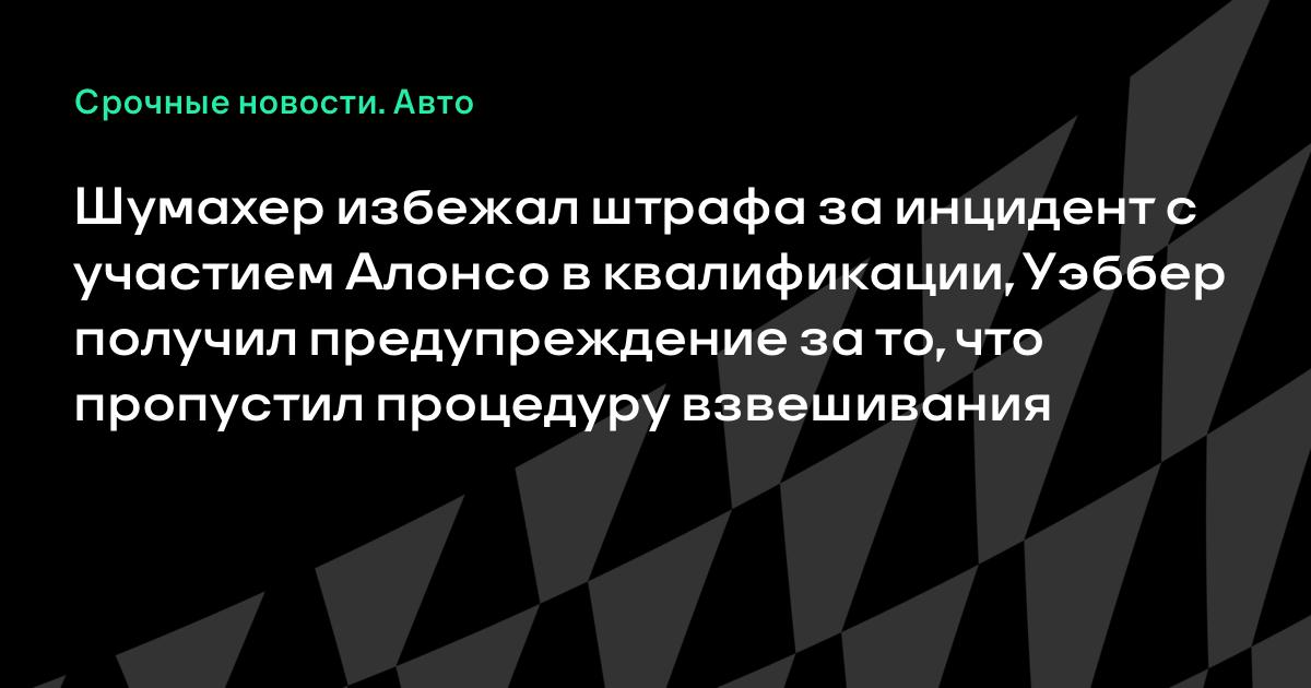 Шумахер избежал штрафа за инцидент с участием Алонсо в квалификации, Уэббер получил предупреждение за то, что пропустил процедуру взвешивания