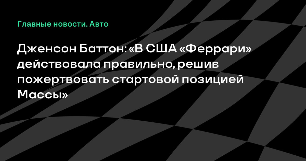 Дженсон Баттон: «В США «Феррари» действовала правильно, решив пожертвовать стартовой позицией Массы»