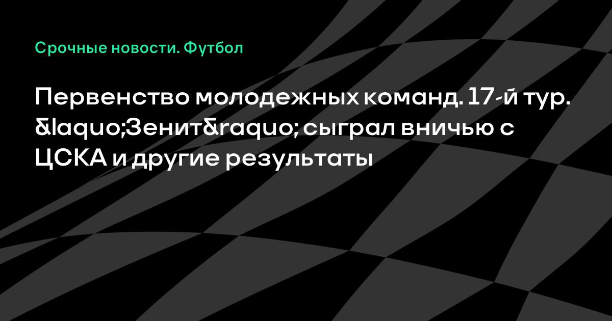 Первенство молодежных команд. 17-й тур. «Зенит» сыграл вничью с ЦСКА и другие результаты
